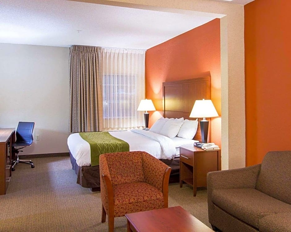 1 King Bed Suite No Smoking Accessible Room is 366 square feet and includes a king-size bed 150-183 width plus desk.